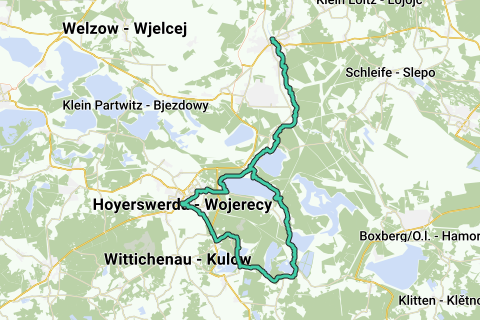 Forløb: Spremberg, Spreewitz, Burgneudorf, Burghammer, Hoyerswerda, Zeißig, Maukendorf, Knappenrode, Koblenz, Mortka, Lohsa, Weißkollm, Burg, Burghammer, Burgneudorf, Spreewitz, Spremberg