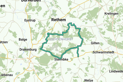 Sydruten fører gennem det næsten befolkningsfrie landskab med større skov-, mose- og hedeområder samt omfattende græsarealer omkring Lichtenmoor. En længere halvdagstur, som man også gerne udvider til en hel dag for at nyde skønheden og ensomheden i dette landskab.