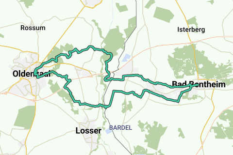 Først cykler du gennem den historiske gamle bydel i Bad Bentheim. I Gildehaus venter ruten med to panoramablikke: fra kirketårnet og Ostmühle. Også værd at se: den hollandske tårnmølle og "Lukasmühle". Gennem det idyliske Grafschap Pad kommer du til Nederlandene. Cykle gennem landsbyer. Ved de Lutte anbefaler vi et besøg til "Arboretum Poort Bulten". Det fortsætter gennem parkområdet "Rhododendronlaan", indtil du når den livlige Marktplatz Oldenzaal. Tilbage går det gennem skovklædt, let kuperet landskab til rekreationsområdet Lutterzand ved floden Dinkel. Langs tidligere stenbrud og det geologiske friluftsmuseum venter det sidste panoramablik på turen: udsigtspunktet ved rastepladsen ved "Voskuhle".