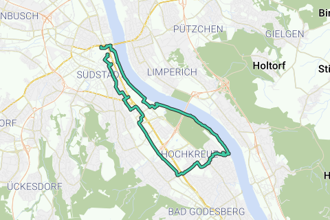 Den cirka 12 kilometer lange rundtur (1 times kørselstid) begynder og slutter ved markedet. I bymidten finder du parkeringsmuligheder for cykler ved hovedbanegården eller i direkte nærhed til markedet på Bischofsplatz ved det gamle rådhus. Den såkaldte Museumsmeile med Museum König, Haus der Geschichte og Karikaturengalerie, Kunstmuseum Bonn, Kunst- og Udstillingshal for Forbundsrepublikken Tyskland og Deutsches Museum Bonn er også tilgængelig med offentlig transport.