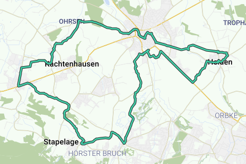 Fra centrum af den idylliske kurby Lage-Hörste starter ikke kun den "Store Tur Lage", men også den ca. 32 km lange cykeltur i den sydlige del af Lage. Her står især de tre gamle kirkebyer Lage, Stapelage og Heiden i fokus, der blev grundlagt mellem 800 og 1.000 e.Kr. Langs ruterne kan du opdage disse højdepunkter: