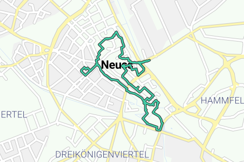 Rundturen begynder og slutter ved rådhuset og fører til 44 seværdige stationer i Neusser bymidte. En stor del af vejen snor sig væk fra hovedindkøbsgaden, gennem små gader og passager og til sidst over promenaden (bymuren) tilbage til markedet.