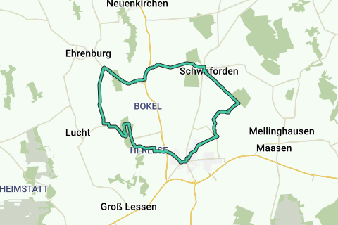Cykelstien krydser fire skovområder mellem Schwaförden og Sulingen. Udgangspunktet ligger ved Mühlenteich i Sulingen.