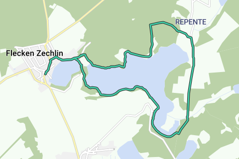 Steder langs ruten: Flecken Zechlin, Schookablage, Siedlitzablage, Franzosenweg, Repente, Landwehrkanal, Beckersmühle, Badestrand, Aflæggelse ved kanalen, Flecken Zechlin.