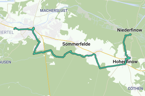 Turen fører os til højre langs Karlswerk gennem den historiske landsbykerne i Hohenfinow. Et afstikker til strudsefarmen med gårdbutik og til udsigtspunktet ved Liebenstein er bestemt meget anbefalelsesværdigt, før vores dags- og slutmål Eberswalde venter os lidt længere mod vest.
