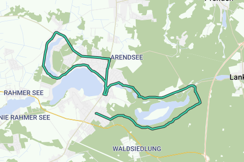 Turen starter ved stationen Wandlitz mod Liepnitzsø. Fra knudepunkt 58 køres syd for Liepnitzsøen ad en godt asfalteret vej over knudepunkt 31. Derefter køres der rundt om den nordlige side af søen. Ved knudepunkt 30 går det nordligt over "Tre Pøle". Ved knudepunkt 1 drejes til højre mod stationen Wandlitzsø, hvor turen også kan afsluttes tidligt. Derfra køres der langs ruten nord for Wandlitzsøen for at omkredse Stolzenhagener Sø med knudepunkterne 15 og 16. Før turen igen fører tilbage til stationen Wandlitzsø, drejes der til højre ved knudepunkt 36.