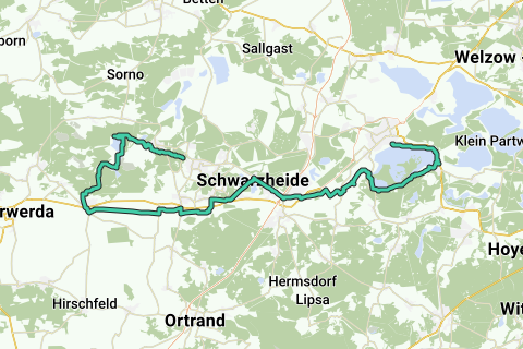 Forløb: Senftenberg, Großkoschen, Niemtsch, Biehlen, Schwarzheide, Plessa, Lauchhammer