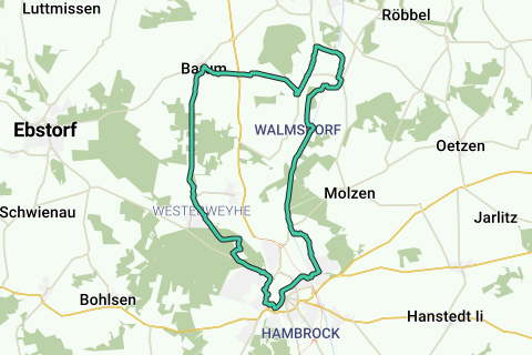 og præget af bøgetræer og eg.Derefter fører turen gennem Westerweyhe direkte ind i Uelzener