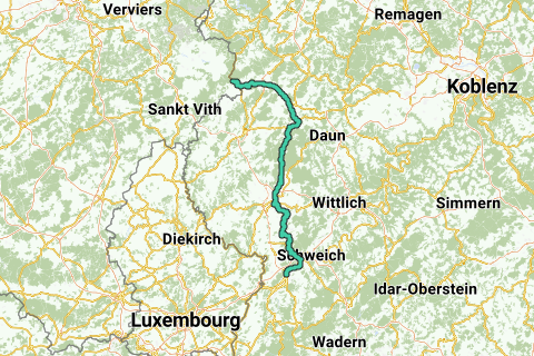 På grund af arbejde langs jernbanelinjen Trier-Köln kan der ind imellem være kortvarige omkørsler langs cykelruten.