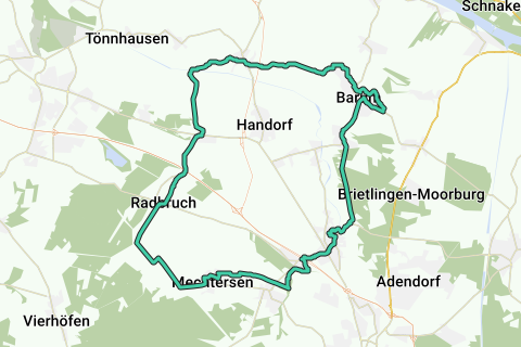 Turen starter ved Bardowicker Dom og går mod stationen. Via Landwehr kører du nu mod Vögelsen på den tidligere jernbanedæmning af "Buchholzer Bahn" gennem en landlig idyl til rytterbyen Mechtersen. Du forlader byen ad en befærdet vej gennem marker og enge mod Radbruch. Herfra fortsætter turen til Rottorf i nabokredsen Harburg. Du følger vejen gennem markområdet og når Ilmenaukanalen. Når du ankommer, krydser du den gamle træbro og når Fahrenholz. Langs floden Neetze fører vejen nu til Oldershausen, et sted der særligt fremhæver sig med sine smukke stråtag og velbevarede bondehuse. På en godt tilgroet strækning gennem marker og enge kører du derefter mod Horburg. Forbi Barumer Sø, med sine smukke sandstrande, når du hedebyen St. Dionys, med sin seværdige kirke og en smukt anlagt golfbane. Du fortsætter på denne strækning og kommer tilbage til Bardowick.