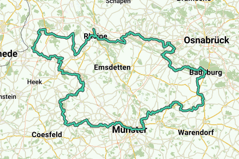Nordkurset af 100-slottsruten begejstrer cyklister med vidunderlig natur og usædvanlige bygninger. Hele den nordlige del af Münsterland viser sig at være så varieret som ingen andre steder i regionen - Ems slynger sig gennem de flade enge, og Teutoburger Wald præger med sine forhøjninger landskabet. På rundturen fra Münster over Bad Bentheim, Rheine og Tecklenburg er der meget at opleve og opdage - Fra parklandskabet til altanen i Münsterland. Særlige højdepunkter på ruten er Burg Hülshoff, Kloster Bentlage og den dobbelt slottsanlæg Harkotten.