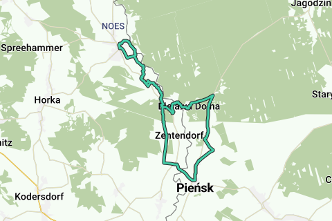 Ruten fører først på Oder-Neiße-cykelstien i sydlig retning til Kulturøen Einsiedel i Zentendorf. Her er der bygget en pontonbro over Neisse, hvor du kan komme over til den polske side med cykel. Rolige skovveje fører til Bielawa Dolna (tidligere Nieder – Bielau) med en lille legeplads, træhus og "Schicksalstafeln". Lidt længere fremme giver Bar Lesna mulighed for en pause. På landevejen mod syd når du efter ca. 6 km Piensk (tidligere Penzig). Her findes en fodgænger- og cykelbro til at krydse Neisse. På den tyske side cykler du igen på Oder-Neiße-cykelstien tilbage til Rothenburg. På højden af Zentendorf er et afstik til Tysklands østligste punkt værd at besøge.