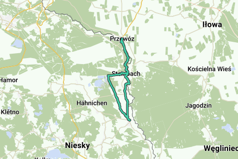 Fra Nye-Camp kører du på Oder-Neiße-cykelstien mod nord. Ruten fortsætter langs den velafmærkede Oder-Neiße-cykelsti, der cirka 3 km efter Rothenburg drejer direkte ind til floden fra landevejen. Herfra følger cykelstien i direkte nærhed af Neiße. Du passerer landsbyerne Steinbach, Klein Priebus og Podrosche og når derefter Przewoz (tysk Priebus), en polsk småby med en rig historie. Efter en lille pause er en afstikker til Pechern genstand for det værd. Der venter dig en smuk bindingsværkeskirke. Tilbage går det igen på Oder-Neiße-cykelstien. I Steinbach skifter ruten til Wolfs-cykelstien og fører gennem naturreservatet Niederspreer Teiche tilbage til Rothenburg.