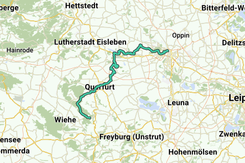 Wangen (Unstrut-ruten) – Arche Nebra – Mittelberg – Hermannseck – Leimbach – Querfurt – Obhausen – Kuckenburg – Esperstedt – Schraplaus – Stedten – Röblingen am See – Aseleben – Rollsdorf – Langenbogen – Zappendorf – Bankendorf – Lieskau – Halle (Saale)