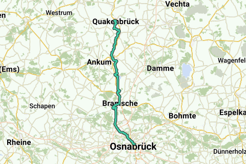 Den private NordWestBahn fører i Osnabrücker Land ud af byen Osnabrück mod nord - hvis du ønsker, helt til Nordsøen. Vores turbeskrivelse slutter dog i Burgmanns- og hansestad Quakenbrück.