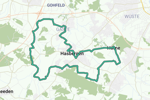 Udgangspunktet for denne cykeltur er Tomblaine-pladsen i centrum af Hasbergen. Alternativ kan du også starte fra den nærliggende station eller rådhuset. På vejen til bydelen Gaste krydser du Heinkenbach, kører forbi enge, marker og skovstykkker, før der på den videre rute er mulighed for at tage en pause i "Landcafé am Goldbach" (husk at tjekke åbningstiderne).