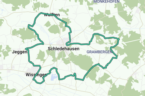 Start- og slutpunkt for Bissendorfer Rundtur Nord er luftkurbyen Schledehausen i ferieområdet Bissendorf. Beliggende midt i natur- og geoparken TERRA.vita kan du her nyde frisk luft, afslappende stilhed og maleriske udsigter over det kuperede landskab i det sydlige Osnabrücker Land. Fra Schledehausen leder turen dig gennem Bissendorfs bydele Wulften, Jeggen, Wissingen og Linne. I Jeggen er det værd at stoppe ved en imponerende storstensgrav. Fra den bemærkelsesværdigt store gravkammer vokser der i dag primitive trækæmper, hvilket gør det egetræsklædte sted til noget helt særligt.
