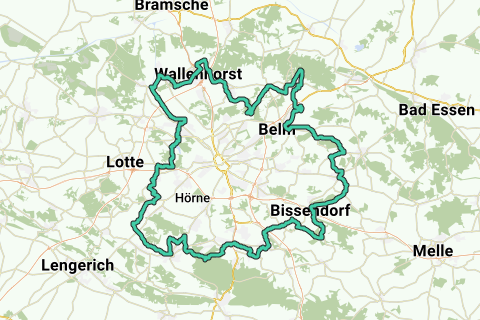 En hest på Hestesko-ruten? Cykelryttere vil helt sikkert også opdage den 105 kilometer lange rute gennem natur- og UNESCO-geoparken TERRA.vita. Men det handler faktisk om meget mere. For cykelstien danner for det første en hesteskoformet bue rundt om Osnabrück. Den fører langs kamme af Wiehengebirge og Teutoburger Wald gennem charmerende kultur- og naturlandskaber, gennem Belm, Bissendorf, Georgsmarienhütte, Hagen a.T.W., Hasbergen og Wallenhorst.