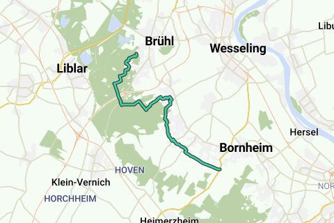Etape 6: Bornheim-Brenig - Brühl – 15 km. Vandrestien snor sig over højryggene i Ville og gennem den lille sølandskab i et tidligere åbent mineområde til Brühler vandtårn. I Walberberg kan man se rester af den romerske vandledning.