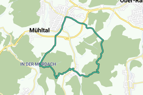 Oplev den maleriske skønhed i naturen på Ortsrundwanderweg Mühltal 1. Denne 9,4 kilometer lange vandretur fører dig gennem varierede landskaber og tilbyder storslåede udsigter, mens du i alt overvinder 293 højdemeetre. Ruten er medium krævende og størstedelen af tiden bilfri, hvilket garanterer dig en behagelig vandreoplevelse. Undervejs passerer du Glasberg og den Evangeliske Kirke i Nieder-Ramstadt, som begge repræsenterer interessante stop. Stien er kontinuerligt skiltet og har en praktisk L-form, så du nemt kan holde overblikket. Nyd de grusede stier og den stille omgivelser, mens du dykker ind i naturen.