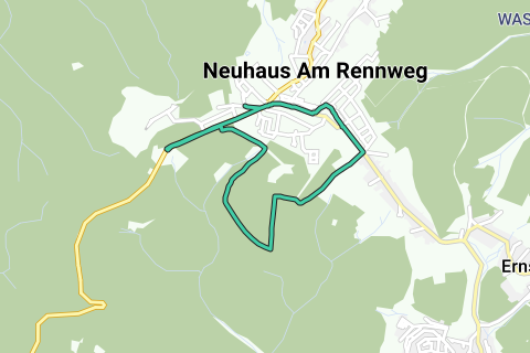 En smuk sløjfe gennem Neuhaus am Rennweg. Denne vandrerute falder delvist sammen med de lange cykelruter eller landsdækkende cykelruter. Vandreruten begynder ved parkeringspladsen.. Sammenfattet: cykling, cykling er credoen!