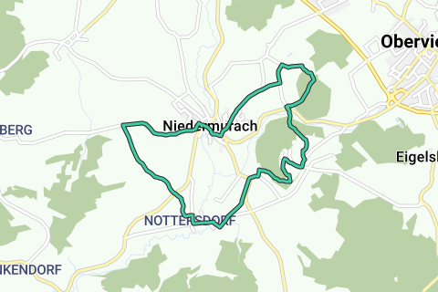 Nogle smukke vandrestier og stier til Niedermurach. Denne rute kan man perfekt starte ved stationen (Niedermurach Station). Ingen kedsomhed langs denne rute.