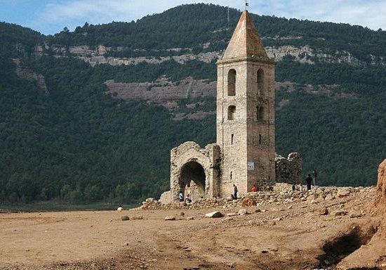 Dens oprindelse placerer befolkningen i Sau i 917. Kirken blev bygget i det 11. århundrede. Den nuværende befolkning blev dannet, da vandreservoiret Sau blev bygget i 1963, hvilket ville dække den gamle bosættelse. På trods af at det stort set har været forladt siden 1860, hvor det blev meldt, at kirken var ubeboet, havde det et par landejendomme, en romansk bro og en kirke, der genoptræder i tørketider.