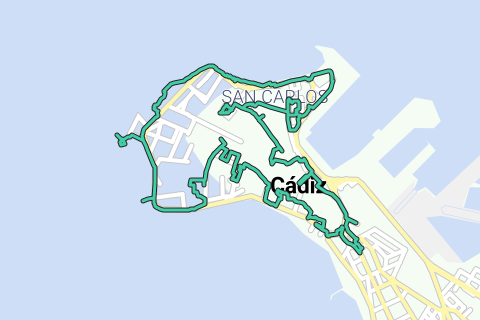 Vi fortsætter op ad promenaden til istmussen Paseo Fernando Quiñones, Baluarte de los Mártires og Baluarte de Capuchinos. Ved Capuchinos Kirken bevæger vi os ind i den gamle bydel for at nå frem til katedralen gennem nogle kirker, Tavira tårnet, det centrale marked og blomstermarkedet.