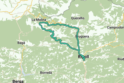 Ruten går opstrøms gennem dalen ved floden El Freser ad den travle hovedvej til Campdevanol, og derefter klatrer du op fra floddalen via den første del af Col de Merolla. Du når ikke toppen, da du fortsætter med at klatre til toppen af Col de la Creueta (1923 m højde). Alt i alt er dette 30 km klatring med en reel variation af landskaber (nederst meget skovrigt, smalle veje, senere brede veje, delvist klippefyldt landskab, på nogle steder farver jorden mørkerød, og oppe kommer du ind i et ugæstfrit bjerglandskab (træløst)). På toppen er der ikke nogen restaurant, den første mulighed for mad finder du omkring 4 til 5 kilometer efter toppen ved en stor parkeringsplads (nær en skistation). Derefter følger en nedstigning med en lille klatring på omkring 100 højdemeter indimellem. Via Toses (her kan du også spise) og Planoles daler du igen ned til floden El Freser (i Ribes de Freser kan du også spise). Du følger nu den (travle) hovedvej nedstrøms gennem floddalen tilbage til Ripoll. Alt i alt betyder det, at de sidste 35 kilometer af ruten næsten udelukkende er nedstigning (og i floddalen ved El Freser er det falsk flad nedad, en eftertragtet nedstigning).