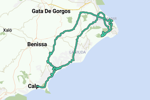 Ruten begynder i det solbeskinnede Calpe, en cykelvenlig badeby og yndet base for cykelryttere. Du varmer langsomt op langs de bløde kystveje, med konstant udsigt til Middelhavet. Efter et flydende rytme af lette bakker og sving når du den charmerende Castell de Moraira. Denne hyggelige kystby, med sit historiske slot og havn, er perfekt til en kort pause med udsigt til havet.