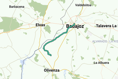 <p><a class="routeYou_embed" href="https://app.routeyou.com/da-es/route/view/18113952?utm_source=embed&utm_medium=article&utm_campaign=routeshare&navigation=external" title="GR-114. Etape 36. Badajoz-San Francisco de Olivenza - RouteYou" target="_blank"><img src="https://image.routeyou.com/embed/route/960x670/18113952-da@2x.png" style="width: 100%; height: auto;" alt="GR-114. Etape 36. Badajoz-San Francisco de Olivenza"></a></p>