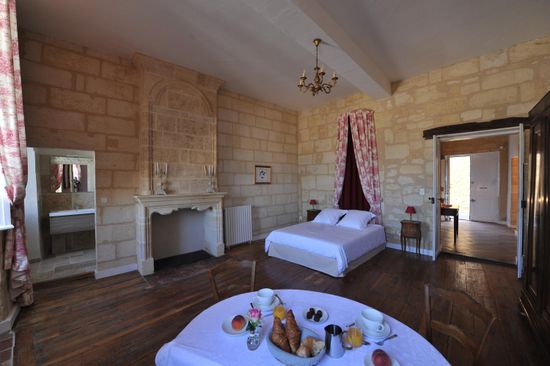 I et stenhusk i hjertet af Saint Emilion, med udsigt over byen, fire store værelser på 45m2, hver med en 160 cm bred seng, et badeværelse og et privat toilet. Enestående udsigt.