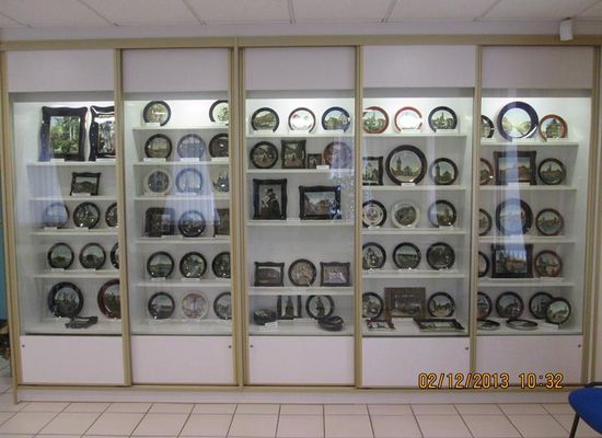 Etage i Rådhuset i Frauenberg tilbyder at opdage en meget smuk samling af tallerkener med farvede kanter, der primært stammer fra fajancefabrikkerne i Sarreguemines. Denne samling præsenterer den specielle teknik til påføring af et fotografi på perlemorsporcelæn, som har haft enorm succes.