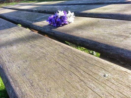 Skyggefuld picnicplads overfor kirken i hjertet af landsbyen.