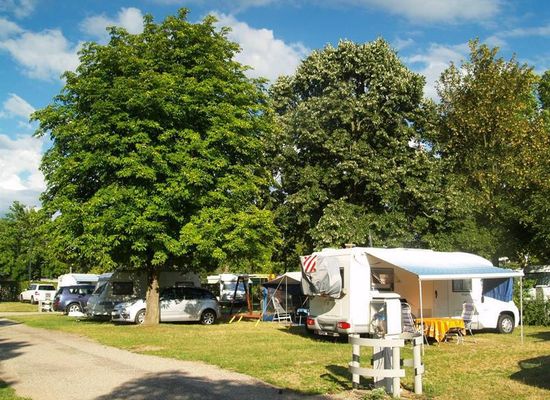 Bycampingplads med 48 græsbeklædte pladser. Rolig beliggenhed nær byens centrum og dens butikker. Gratis Wi-Fi for campisternes beboere. Svømmebassin 300 m væk med fordel: Entré for voksne til halv pris for alle campister, der besøger svømmebassin, ved fremvisning af kvittering udstedt af campingpladsen (1/2 pris pr. dag og pr. voksen).