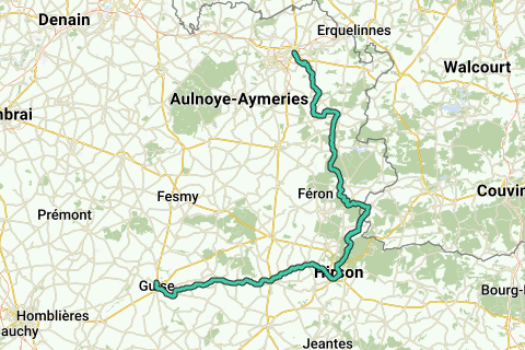 Den grønne rute fra Maubeuge giver dig hurtigt en varierende omgive, fra industrielle rester til fæstningslandskaber og skove. Ruten fører dig til både rolige søer i sin "kanadiske" stil og brusende bjergfloder, der er ideelle til fotostop eller snackpauser! Det omfattende fæstningslandskab i Thiérache tilbyder et beroligende miljø med æbletræer, hagtornhegn og den bløde hvisken fra bække. Som tiden går, bliver det grønne fæstningslandskab afbrudt af den snoede flod Oise, der oversvømmer græsniederne. Græsniederne efterfølges af meget smukke fæstningskirker. Ankomst til Guise med sin berømte Familistère (bygning) fra Godin, og sit slot.