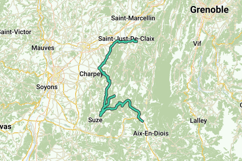 Tip: der er inkluderet en "tur-retur" rute (af 2x 8 km), som du virkelig ikke bør springe over: du cykler nemlig ned i dalen ved den lille flod Gervanne, hvor du cykler gennem en isoleret og smuk kløft (Gorges de l'Omblèze), og vejen ender ved byen Omblèze (selvom ruten ikke går til den blindgyde). I kløften cykler du også forbi to vandfald: Chute de la Pissoire og Cascade de Chatelat. Tilbagevejen på dette stykke kræver dog lidt stigning (110 meters højdeændring).