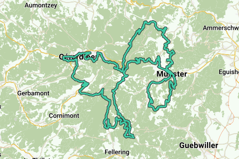 Gérardmer - La Bresse - Wildenstein - Le Markstein - Route des Crêtes - Le Hohneck - Route des Crêtes - La Schlucht - Soultzeren - Stosswihr - Munster - Metzeral - Sondernach - Petit Ballon - Munster - Hohrod - Col du Calvaire - Le Valtin - Le Collet - Retournemer - Lac de Longemer - Xonrupt-Longemer - Gérardmer