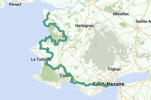 La Baule, der er med i klubben for verdens smukkeste bugter, og dens villaer skjult bag ved havfronten, er den ideelle ramme for blidt at begynde dette nye kapitel, næsten med pedalerne i vandet. Når denne parentes med høj turistværdi er overstået, tager vi af fra hovedvejen for at opdage saltmyrene og et meget mere vildt panorama. Selvom Moderne Krydsning ikke konstant flirter med Atlanterhavet, er dets sprøjt aldrig for langt væk. Havet dukker konstant op og forsvinder i takt med zigzag-bevægelserne, der fører stille og roligt mod Pénestin og dets fredede område ved Mine d’or og de gyldne klipper.