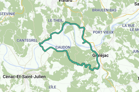 En kort cykeltur fra Vitrac, forbi Caudon Slot, en opstigning på cirka 2 km langs skoven "Les Combes de Dommes" for så at falde tilbage til Dordogne, hvor vi besøger de smukke vandhaver i Carsac.