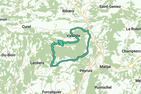 En meget dejlig cykeltur til og over toppen af Montagne de Lure, lillebroren til Mont Ventoux. Turen starter ved foden af Montagne de Lure i Saint-Etienne-les-Orgues med en stigning på 18 km til toppen. En højde forskel på 1000 m skal forklares. Vejforholdene er meget gode og næsten fri for biltrafik. Skråningen er ret konstant omkring 7%. De sidste par kilometer er næsten flade. Når man når toppen, begynder en nedstigning på omkring tredive kilometer på nordsiden af bjerget. I starten går det nedad ret stejl, men når man har passeret hårnålesvingene, bliver vejen bredere og mindre stejl. Den nordlige skrænt af bjerget er stejl og tilbyder meget spektakulære udsigter forskellige steder. Forbi Valbelle følger turen den smukke Jabron-flod nedstrøms til dens udmunding i Durance. Fra Durance-dalen begynder en let og meget gradvis stigning tilbage mod udgangspunktet. Når man har passeret Mallefougasse, er de sidste 12 kilometer næsten flade.