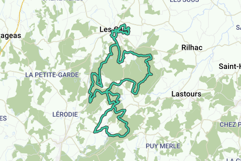 For erfarne løbere: På denne lange rute skifter tekniske passager, gode stigninger og landskabet i Limousin, så du kan udforske dine grænser. Du krydses skovene i Les Cars og Lastours indtil kilden ved Dronne og passerer landskaberne, indtil du når slottet i Les Cars.