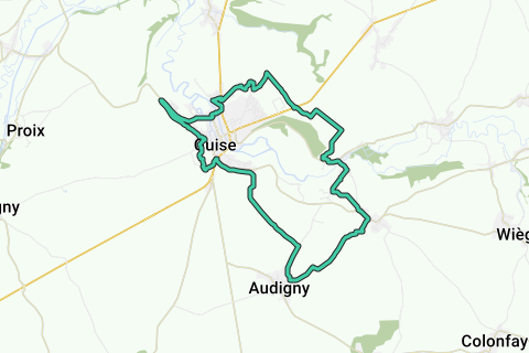 Af gården Familistère de Guise går denne lange, kuperede vandretur på Voie Verte de Thiérache, før du når det gamle slot La Ferme-de-l'Étang og landsbyen Beaurain med sin smukke festningskirke.