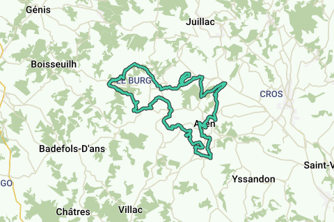 Store løb nr. 3, der fører gennem kommunerne Ayen, Perpezac le Blanc, St Robert, Segonzac og Rosiers de Juillac.