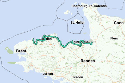 Denne rute følger den nordlige kyst af Bretagne, fra Mont Saint-Michel til Roscoff, og er en del af EuroVelo 4: en rute gennemsyret af havets atmosfære og duft. Du vil passere gennem Saint-Malo, Dinard, Cap Fréhel, Saint-Brieuc-bugten, Den rosa granitkyst og Morlaix-bugten.