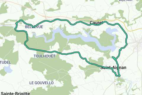 Du kan cykle rundt om Lac de Guerlédan på netværket af grønne veje, især Voie Verte 6, en tidligere jernbanelinje, fra nord. Når du når Mûr de Bretagne og dens dæmning, kører du sydpå gennem Quénécan skoven for at vende tilbage til abbeyen Bon-Repos.