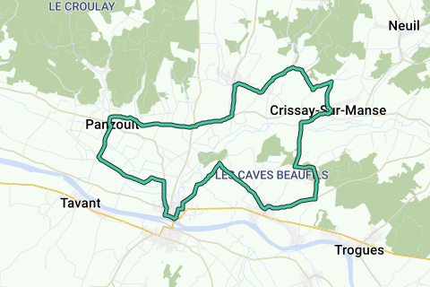 Hop ombord til et eventyr gennem de fortryllende landskaber langs en rute, der snor sig gennem naturen. Denne 23,3 kilometer lange rundtur giver dig en dejlig cykeloplevelse med et moderat sværhedsgrad, perfekt til at nyde en dag udendørs. Når du cykler denne rute, vil du opdage skønheden i Crissay-sur-Manse og kan tage en pause på Auberge de lIle. Med en samlet højdeforskel på 193 meter venter der fantastiske udsigter ved hver sving, så du kan nyde de maleriske landsbyer i området. Vejen er helt belagt, så du kan træde i pedalerne komfortabelt. Dyk ned i en beroligende natur, mens du udforsker skattene i Vienne og Manse.