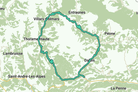 Via dalen af floden Verdon cykler du til toppen af Col de la Colle St. Michel (eller Colle Saint Michel) med strålende udsigt over floden Verdon, og derefter cykler du ned til Méailles; lige før denne landsby kommer der endnu en kort stigning med mange hårnålskurver. Via dalen af Vaïre kommer du ind i dalen af Var, og du er hurtigt tilbage ved Entrevaux.