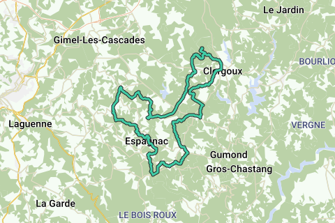 Dyk ned i et eventyr på 43,6 kilometer midt i Massif Central, tæt på Jardin DAurélia. Denne rute med en middel sværhedsgrad tager dig gennem fantastiske naturskønne landskaber, væk fra byens larm. Med 638 meters højdeforskel skal du være klar til at træde i pedalerne på en rute, hvor 62 % af stierne ikke er asfalterede, så du virkelig kan komme tættere på naturen. På vejen kan du tage en pause ved den kommunale svømmetur i Saint-Martial de Gimel eller nyde en snack på Bar-Snack ved Domaine de Sédières. Lad dig rive med af denne autentiske oplevelse og mærk roen på en rute, der primært er autoluw.