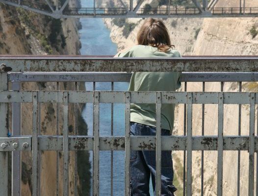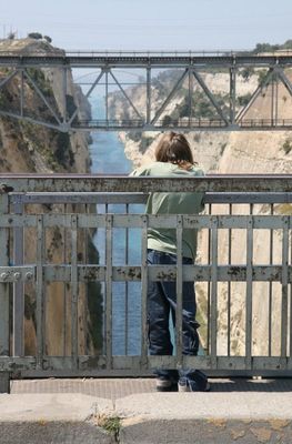 Broen over den gamle vej ved Kanalen i Korinth giver dig den bedste udsigt over denne fantastiske konstruktion.